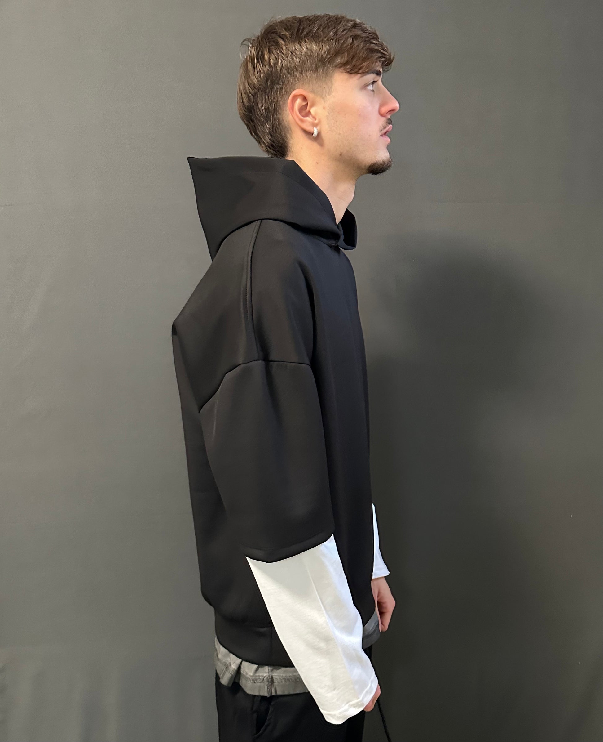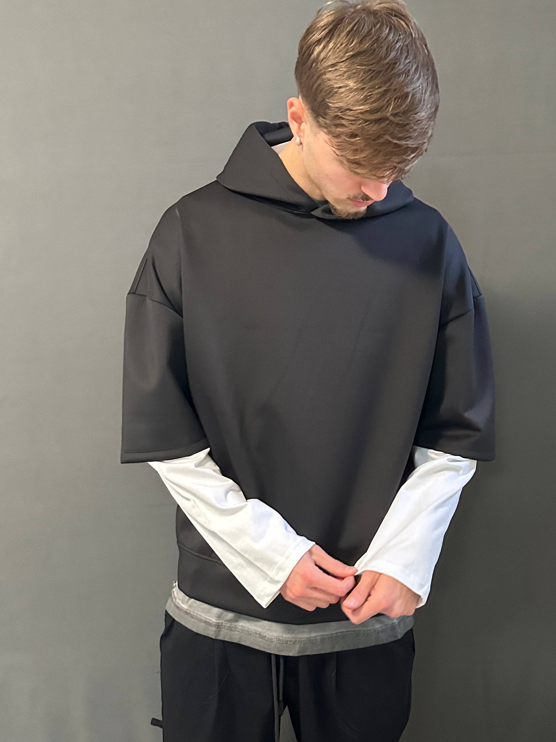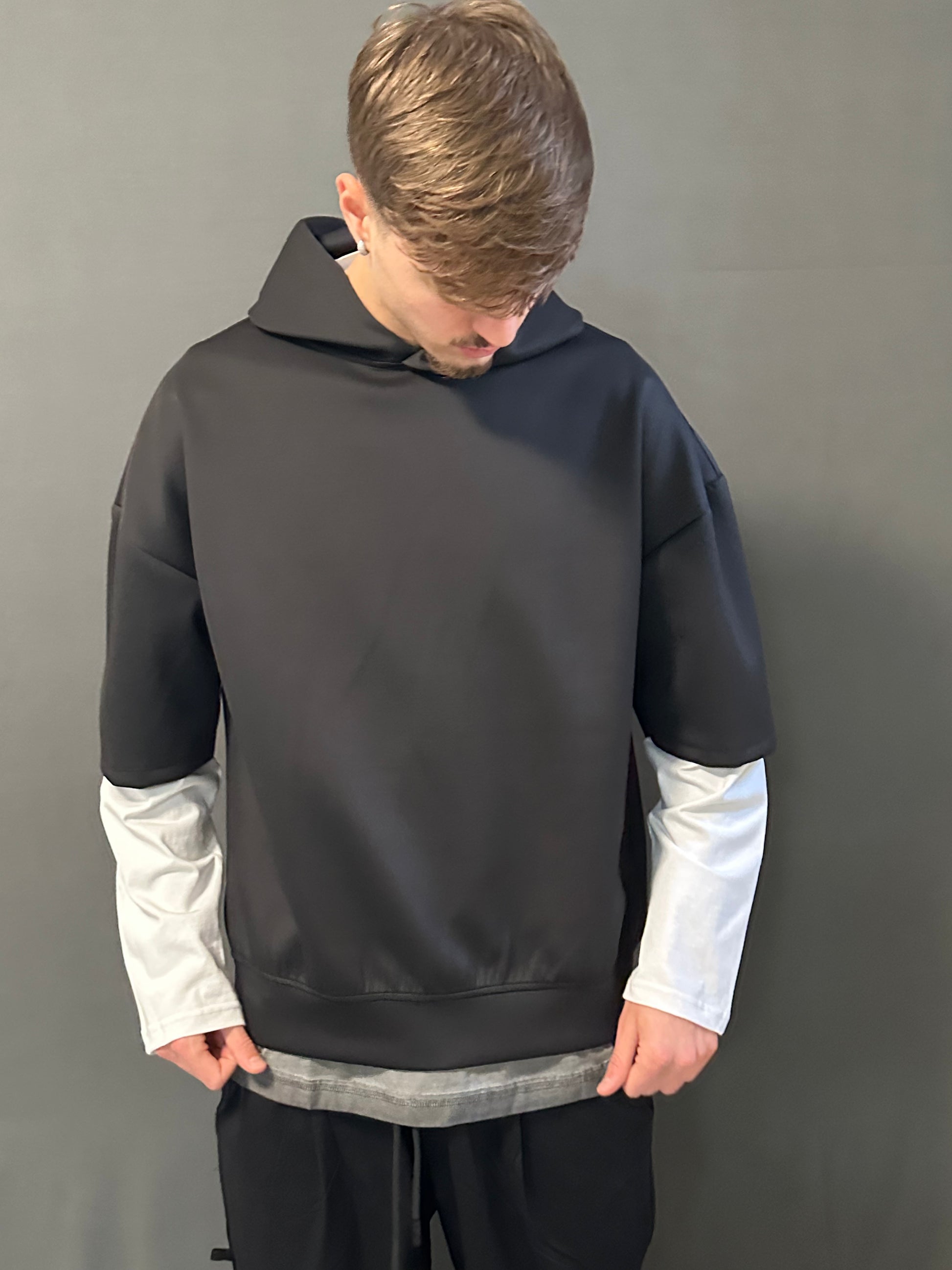 Felpa con doppia manica, un capo dal design unico che unisce comfort e stile streetwear.